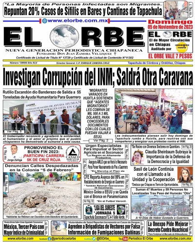 CategorÃas : DeportesEntretenimientoEspectáculosPoliciacaPoliticaPeriódico "EL ORBE" El de Mayor circulación en el Estado de Chiapas.