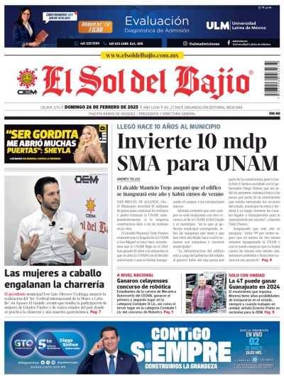 Categorías : DeportesEntretenimientoNoticiasEn la boyante región del Bajío, el área de influencia de nuestro diario abarca 20 municipios y la cobertura informativa más completa de la región gracias a los 10 diarios hermanos que la Organización Editorial Mexicana (OEM), la empresa editorial más grande de América Latina.