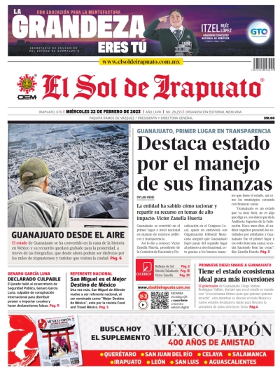 Categorías : DeportesNoticiasPoliciacaPoliticaSocialesTecnologíaEl Sol de Irapuato forma parte de la fuerza informativa que, como nadie más, ha desplegado en la región del Bajío, la Organización Editorial Mexicana (OEM), la mayor empresa editorial de Latinoamérica, lo que garantiza una cobertura única.
