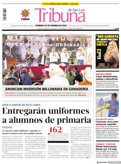 Categorías : DeportesEspectáculosPoliciacaPoliticaSocialesTecnologíaTribuna de San Luis cerró 2020 con 47 años de existencia y listo para seguir renovándose como lo exigen sus lectores. Como parte de la Organización Editorial Mexicana (OEM), cuenta con la fuerza de más de mil periodistas a nivel nacional, además de una importante sinergia con los diarios hermanos de la región: El Sol de Tijuana y La Voz de la Frontera, lo que explica también su posición como el favorito de los anunciantes.